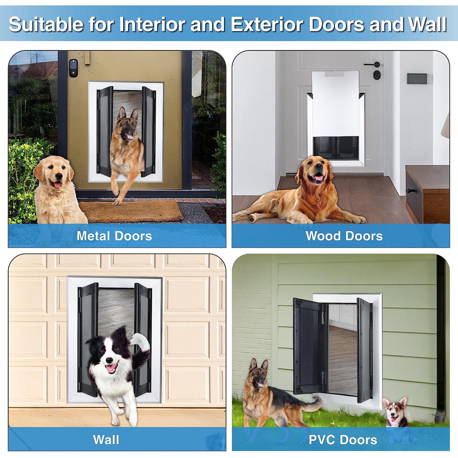 Say goodbye to fragile flaps with the HANIML Aluminum Dog Door. This durable and weather-resistant doggy door is made from high-quality aluminum, making it perfect for interior and exterior use on wood, metal, or PVC doors. Featuring double opening panels with strong magnetic and flexible springs, it allows your dog to enter and exit independently while automatically closing behind them. The lockable panel ensures home security and energy efficiency, even in extreme weather. Easy to install with a guide line for cutout size, this dog door is designed for large dogs, providing them with the freedom and independence they deserve.