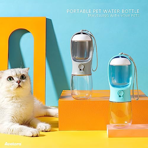 AVELORA Dog Water Bottle,Portable Pet Water Bottle with Food Container,Outdoor Portable Water Dispenser for Cat,Puppy,Pets for Walking,Hiking,Travel,Puppy Essentials,Dog Stuff(10oz)