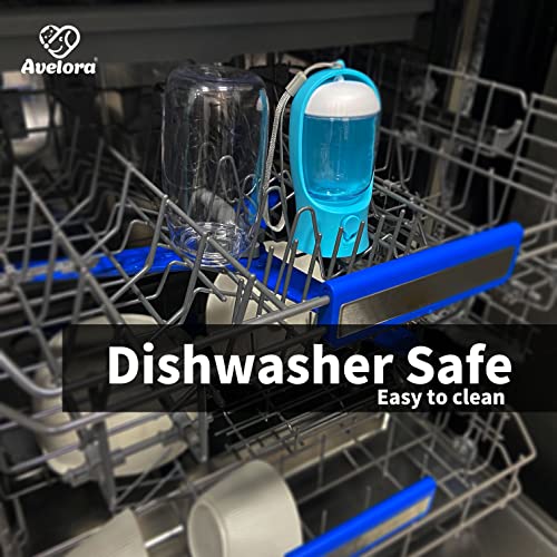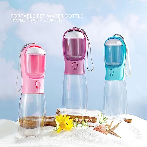 - 【Upgraded Bigger Capacity】:Avelora water bottle can hold max 19 ounces (550 ml) of water and 100 g food. It not only ensures dog drinking water easily but also cat, rabbit or other small pet to drinking water easily. You can put this bottle into your pocket, backpack or hanging on your hand with sling rope.