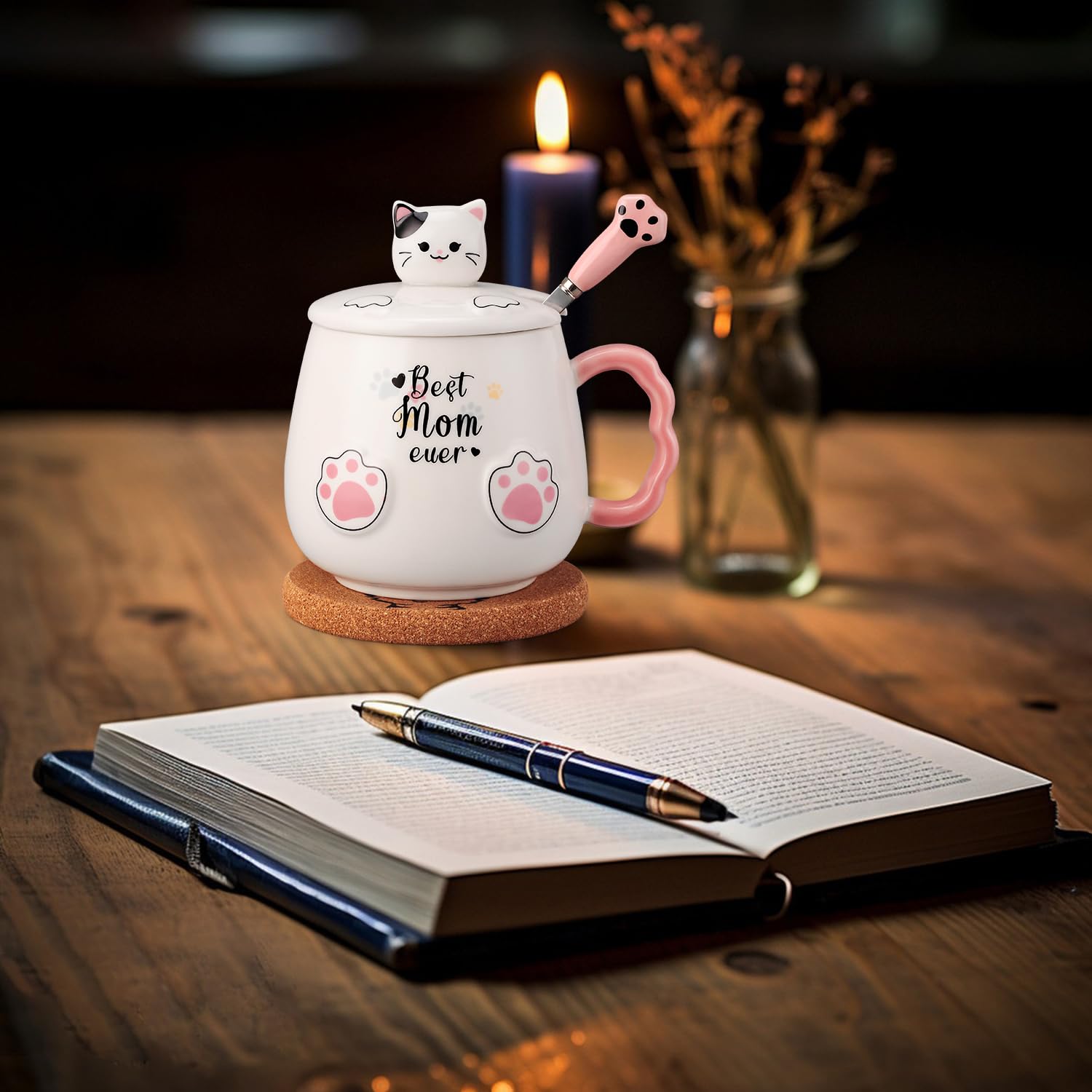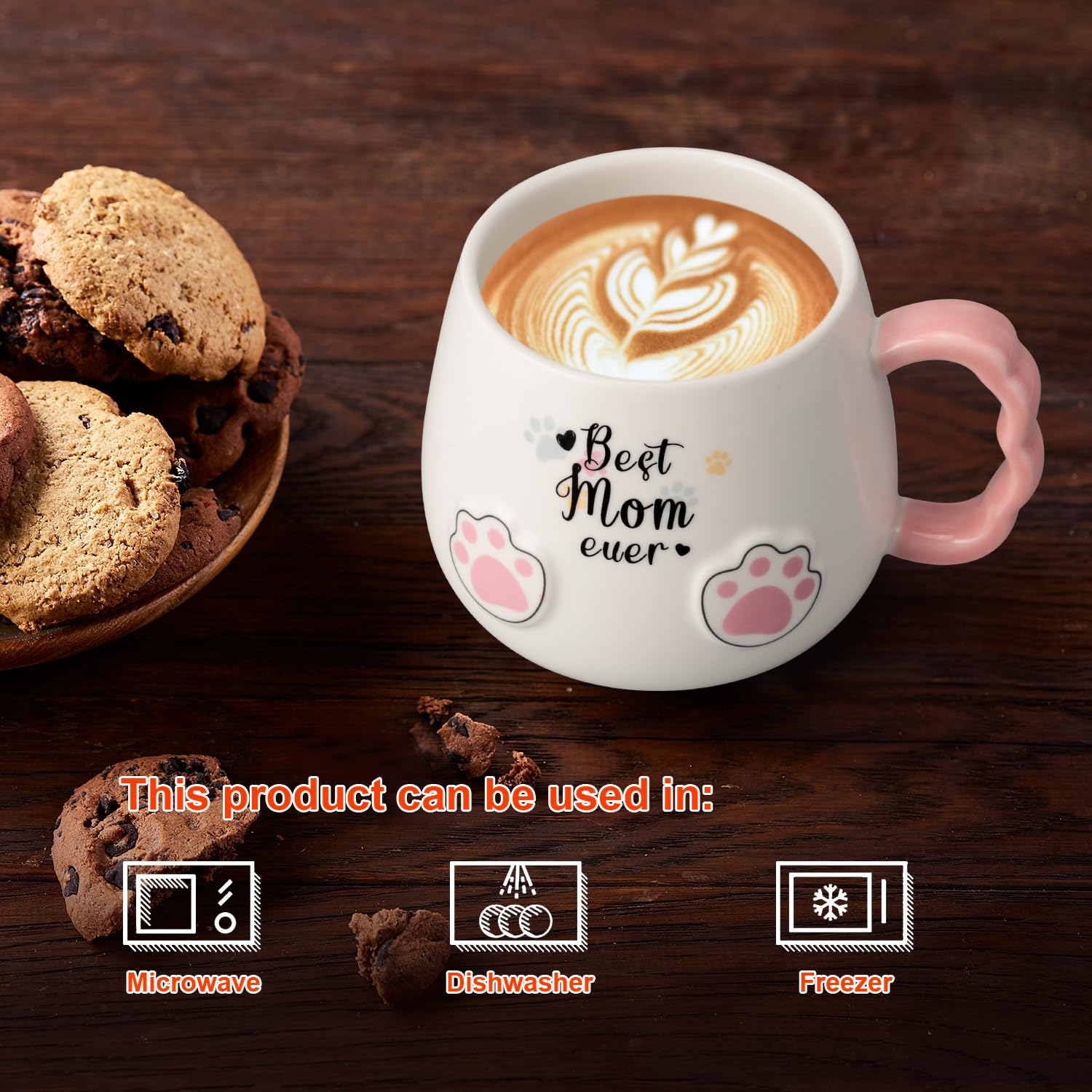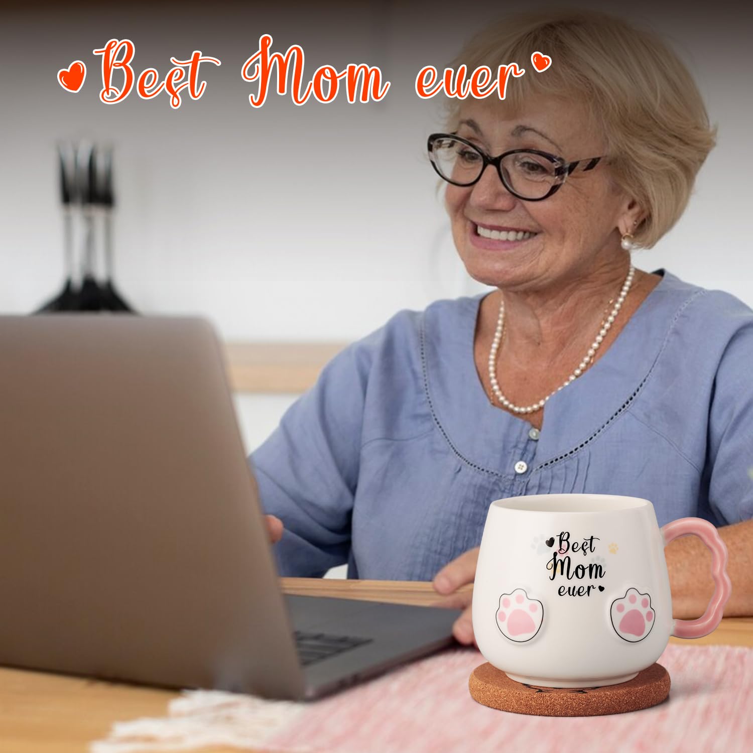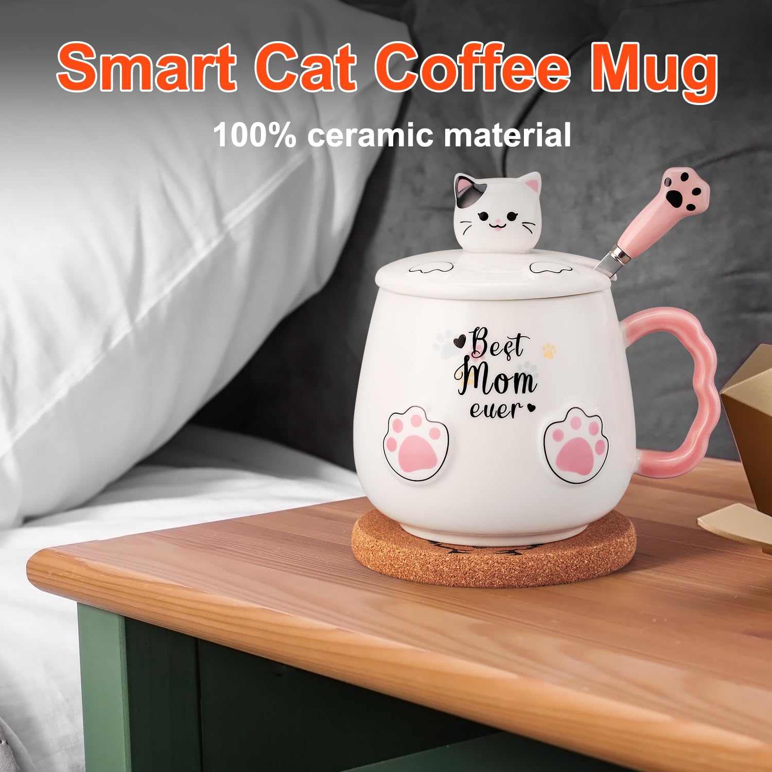 Celebrate your love for cats and your favorite beverages with the Bgbg 3D Best Mom Cat Mug. This adorable 14-ounce ceramic mug features 3D sculpted cat claws on the body and a cute kitty on the lid, making it a delightful piece of art as well as a practical coffee mug. Designed with a special frosted flat bottom, it's perfect for use with mug warmers, ensuring your coffee stays hot. Safe for use in the microwave, refrigerator, and dishwasher, this BPA-free and toxin-free mug is suitable for both hot and cold drinks. Complete with a cat paw spoon and cute cat coaster, it's an ideal gift for cat lovers on any occasion, including birthdays, Valentine's Day, Mother's Day, and Christmas. Enjoy your favorite hot cocoa, milk, coffee, or juice with this charming and unique mug.