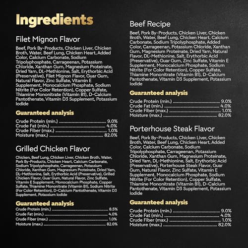 Treat your dog to a gourmet meal with the Cesar Wet Dog Food Classic Loaf in Sauce Variety Pack. Made in the USA with real meat as the #1 ingredient, this high-quality dog food includes a variety of flavors such as Beef, Filet Mignon, Grilled Chicken, and Porterhouse Steak. Each 3.5 oz. tray contains no fillers or artificial flavors and is formulated without grains, providing a complete and balanced meal for adult dogs. Conveniently served in easy peel-away trays, it’s perfect for complementing dry food or as a standalone tasty meal. Ideal for dogs with sophisticated palates, it makes every mealtime delicious.