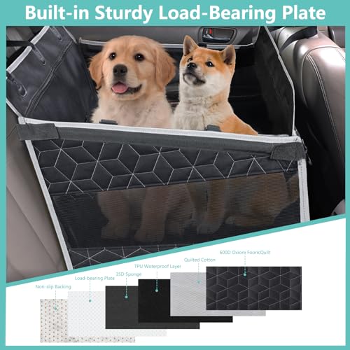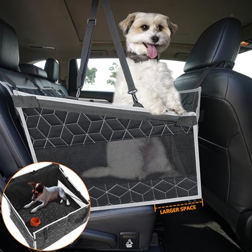 The Meginc Dog Car Seat is designed to expand the space in the back seat, providing comfort and security for your dog during car rides. Measuring 28.74 x 23.23 x 21.26 inches, it can accommodate one large dog, a medium-sized dog, or three small dogs up to 100 lbs. Made from high-quality, waterproof, and scratch-resistant materials, it ensures durability and ease of cleaning. The thoughtful design includes seat belt sockets, anti-slip rubber, and seat anchors for added safety. Easy to install and disassemble, the dog car seat is also machine washable for convenience.