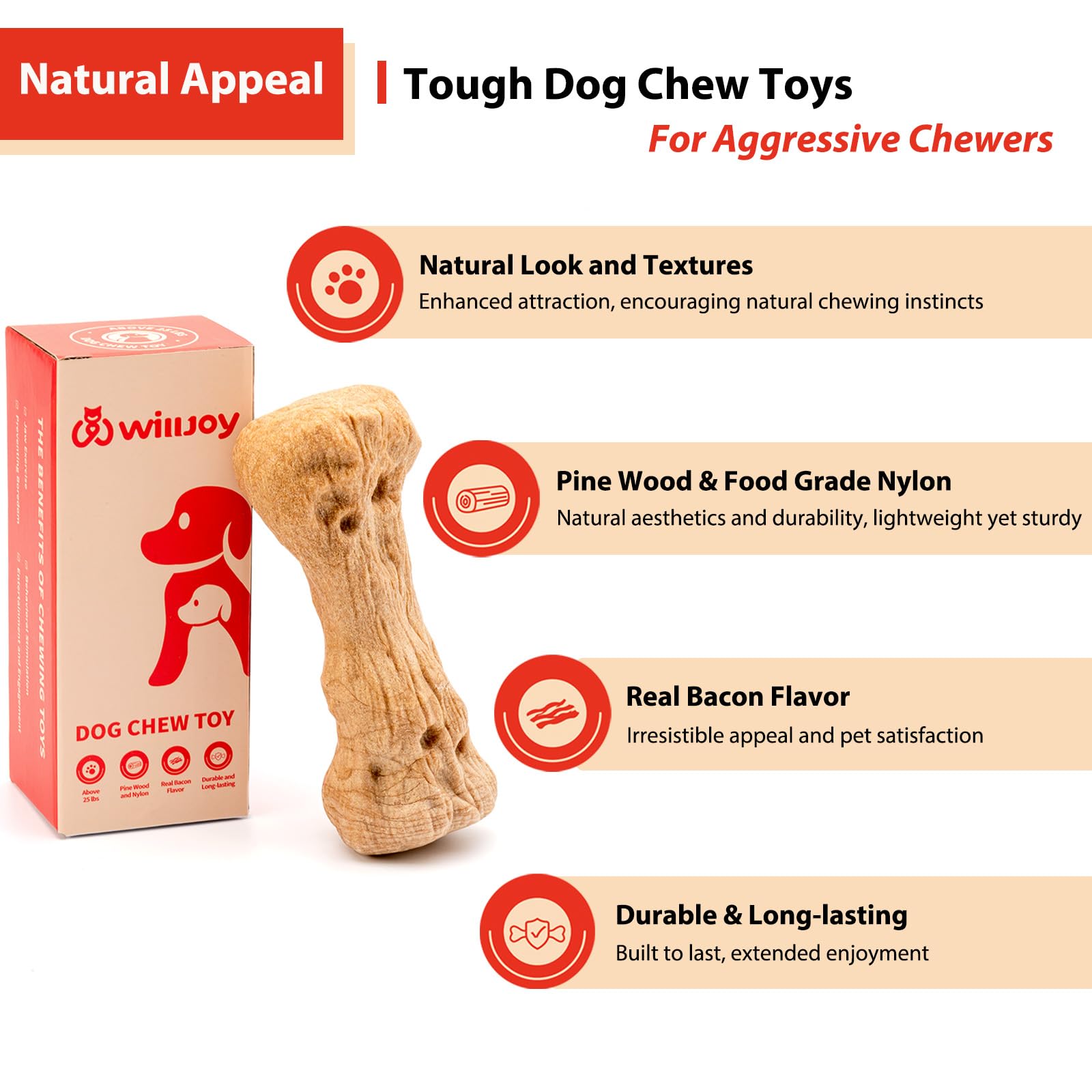 Keep your dog entertained and engaged with the Willjoy Natural Appeal Dog Chew Toy. Made from real pine wood and tough nylon, this chew toy is perfect for aggressive chewers and dogs who love chomping on outdoor sticks. The bacon-flavored toy has an easy-grip grooved design, making it ideal for medium to large dogs over 25 lbs. It promotes oral health and is easy to clean with a quick rinse or dishwasher run. Package dimensions are 6.3 x 2.7 x 2.4 inches.