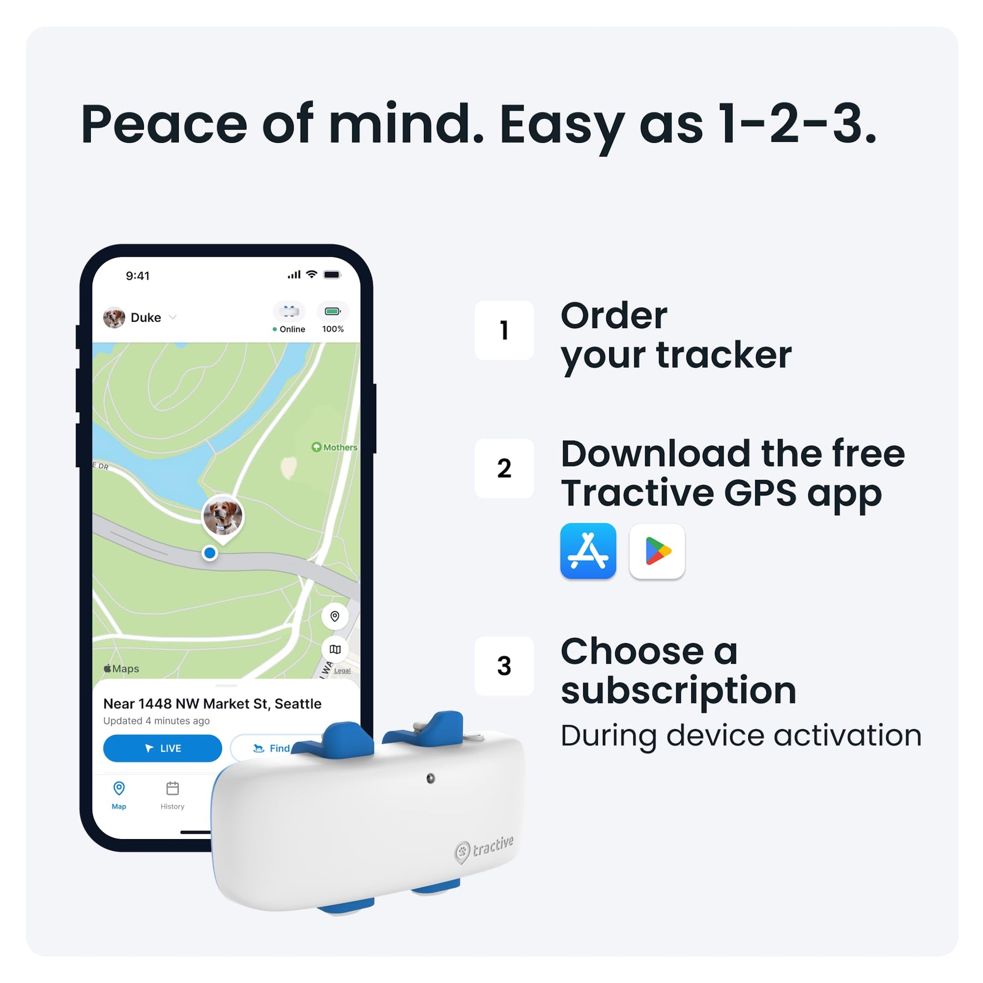 Always know where your dog is with the Tractive GPS DOG 4 Tracker. This real-time GPS tracker provides unlimited range tracking, so you can see your dog's location anywhere. It requires a subscription plan starting at $5 per month, covering all costs of the integrated SIM card and data. The tracker also monitors sleep quality and activity patterns, sending alerts if something unusual is detected. With features like live tracking, location history, and escape alerts, you can keep your dog fit and safe. Designed for all weather conditions, it's waterproof and durable. Package dimensions are 3.7 x 3.7 x 1.5 inches.