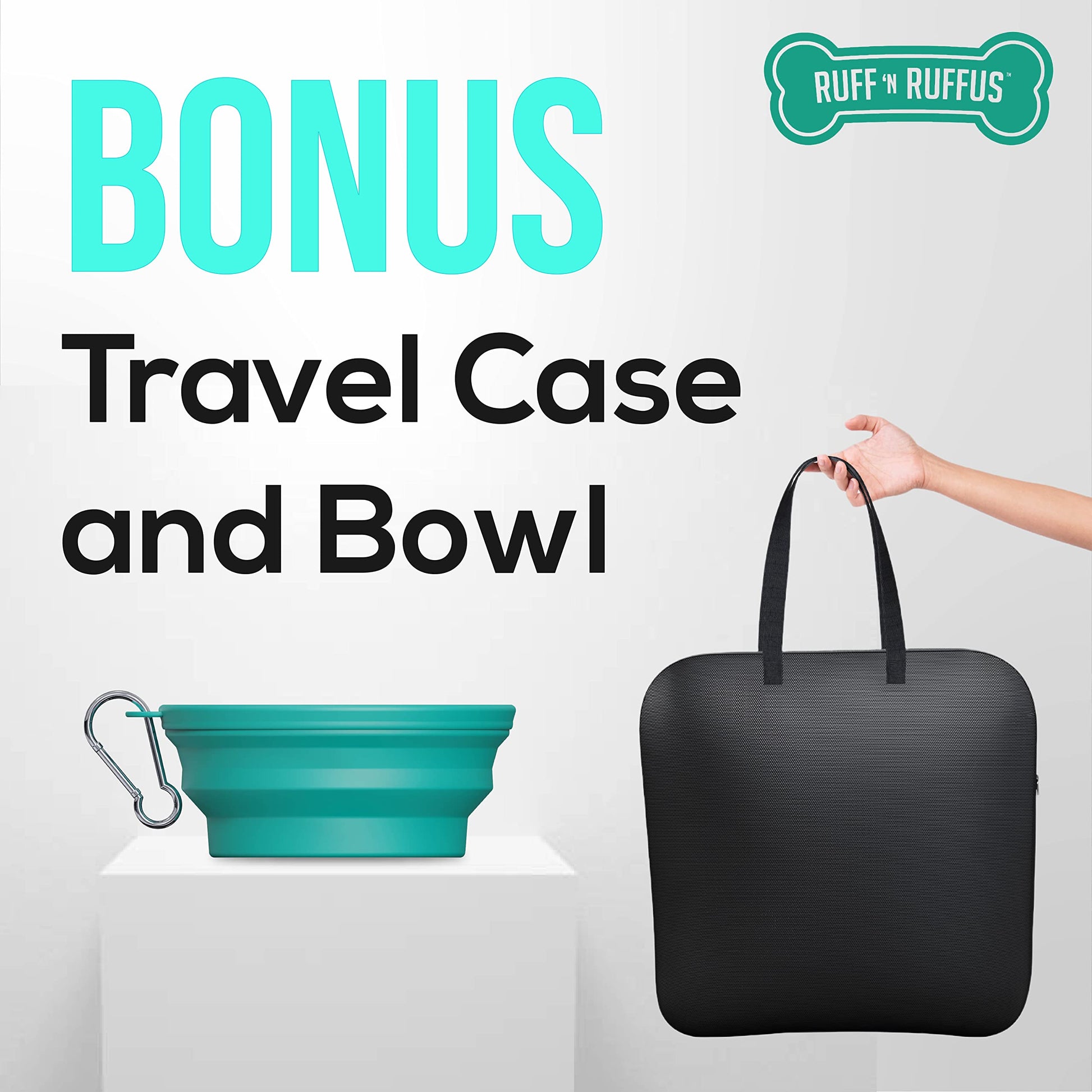Travel with confidence with the Ruff 'n Ruffus Car Barrier. Made from heavy-duty steel, this barrier keeps your pet safely contained in the back of your vehicle, protecting your seats from drool and damage. Easy to install and adjust, it fits most SUVs and wagons, with a main panel measuring 35.5” x 16.5” and side panels measuring 12” x 10.5”. The see-through mesh design allows you to keep an eye on your pet while driving. This portable barrier folds easily for storage and comes with a collapsible bowl and travel case. Enjoy stress-free travel with your pet with this durable and convenient car barrier. Package dimensions are 19.8 x 17.1 x 2.0 inches.