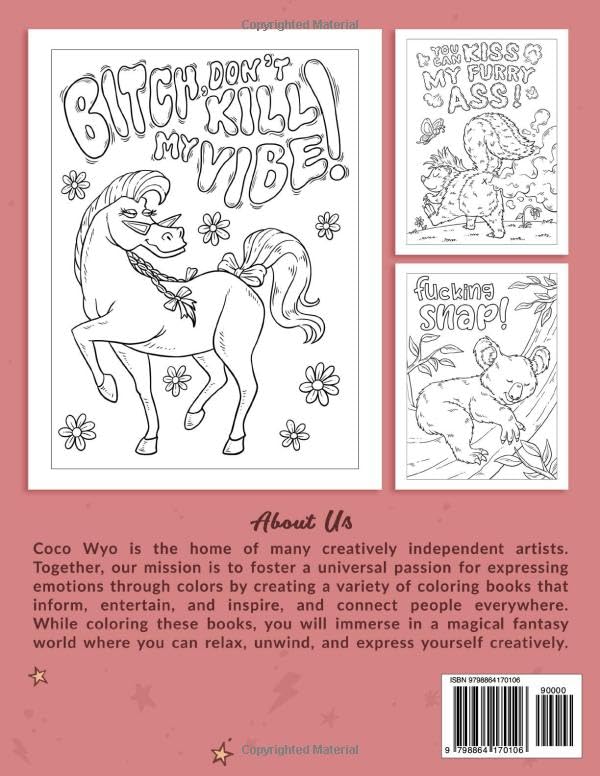 Get ready to meet the cheekiest animals with the "Sassy Animal Coloring Book" by Coco Wyo. This hilarious coloring book features a variety of animals uttering witty and sometimes sweary quotes that align perfectly with their species' traits. From a snarky cat to a grumpy squirrel, these animals are sure to tickle your funny bone. With 30 funny illustrations, each large-sized 8.5" x 11" page is printed separately to prevent bleed-through and make framing easy. This book offers hours of art therapy and relaxation, making it a perfect gift for yourself or any animal lover. Dive into the sassiest coloring adventure and bring these uproarious critters to life. Package dimensions are 11.0 x 8.5 x 0.4 inches.