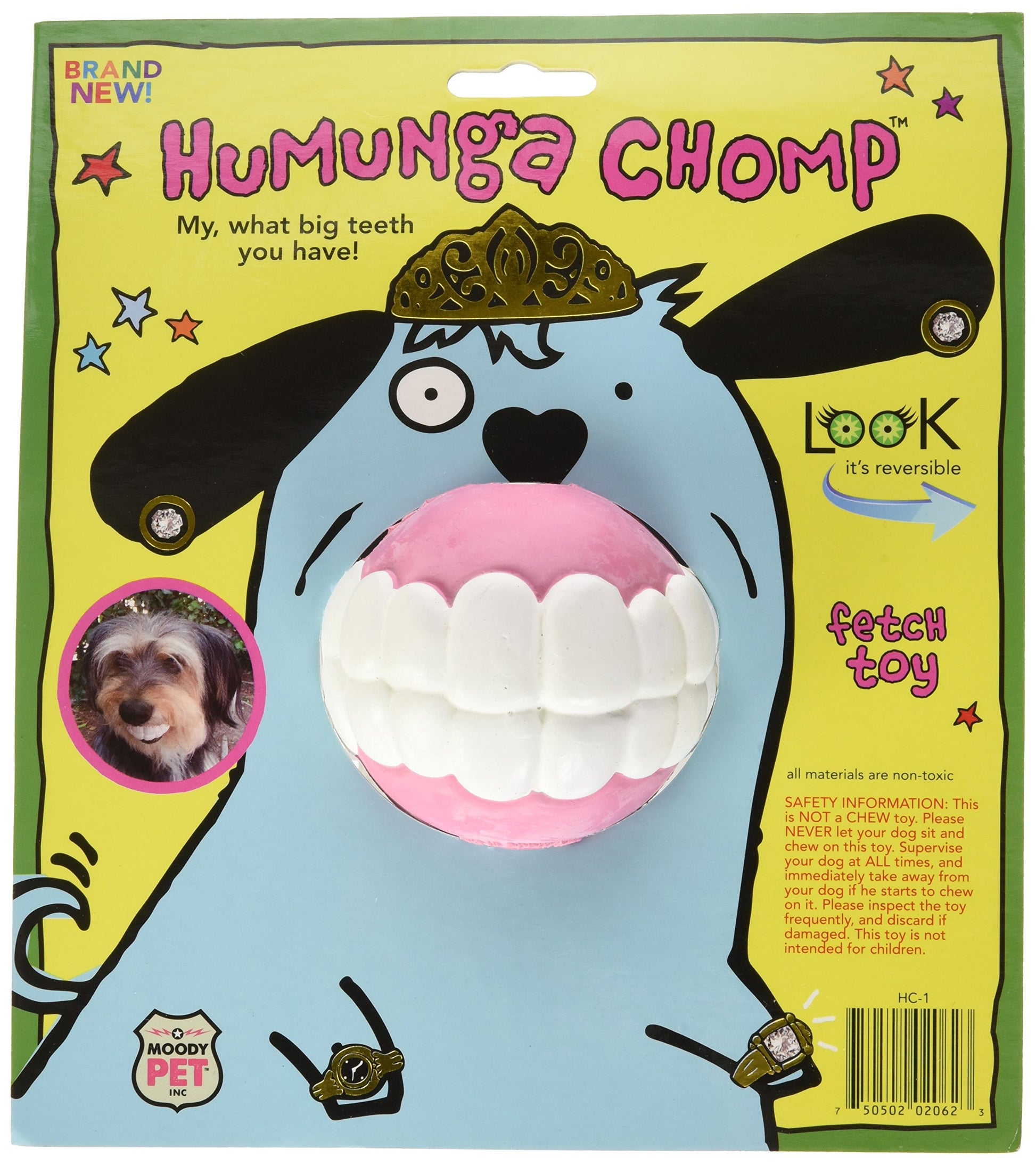 Bring laughter and fun to your playtime with the Moody Pet Humunga Chomp, the world’s funniest dog toy! This high-quality fetch toy gives your dog a giant smile with human-like teeth. Made from durable, non-toxic, natural rubber, it’s a hollow ball with holes on the top and bottom. Ideal for dogs weighing 25 lbs and up, this 2.4-inch diameter ball is perfect for photo ops and gift-giving. Note that this is a fetch toy, not a chew toy. Your dog will be the envy of the dog park with this hilarious toy!