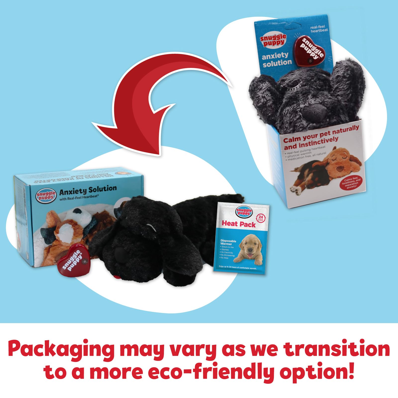 Calm and comfort your dog with the SmartPetLove Snuggle Puppy. This durable and hypoallergenic toy mimics the intimacy of a mother with its real-feel heartbeat and heat pack. Ideal for crate training, separation anxiety, and fear of loud noises, the Snuggle Puppy provides a sense of security for your pet. The machine washable design ensures easy maintenance, and the included AAA batteries and heat pack offer convenience. Since 1997, the Snuggle Puppy has helped over 2,000,000 pets reduce stress and anxiety, promoting a more peaceful and restful environment for both you and your dog.
