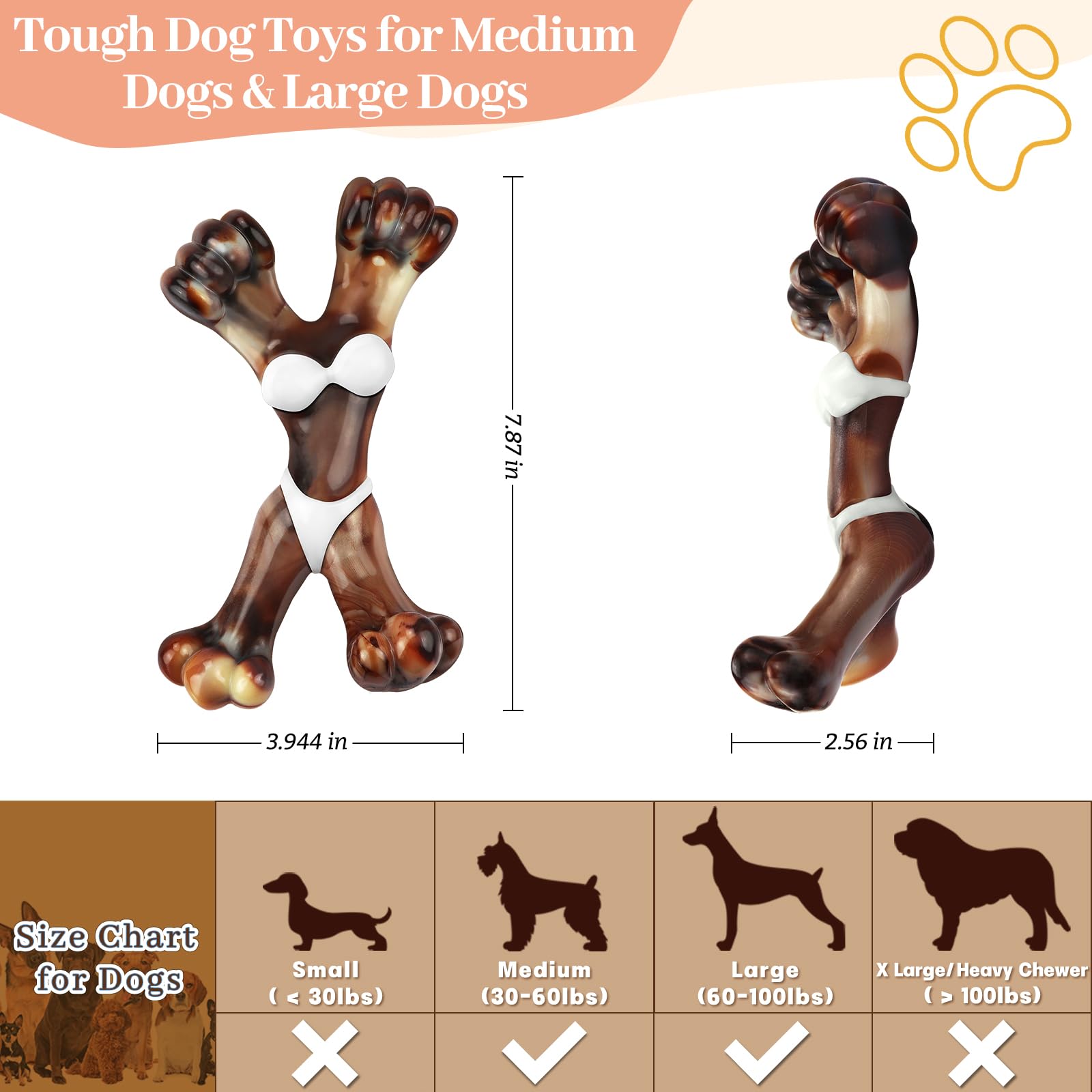 The WinTour Durable Dog Toy is designed for aggressive chewers. Made from non-toxic and durable food-grade nylon, this toy is built to last. Its unique design mimics a cute cat girl, adding fun for your dog. The toy features an enticing beef flavor to keep your dog entertained and promote oral health by cleaning their teeth. It's perfect for medium and large dogs and can help relieve anxiety and boredom. This durable toy is an excellent choice for special occasions like birthdays, Halloween, Thanksgiving, or Christmas. Package dimensions are 8.3 x 4.6 x 2.9 inches.